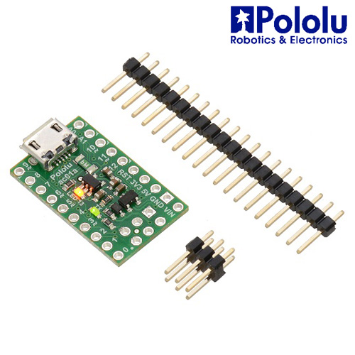 El A-Star 32U4 Micro es un pequeño módulo programable que presenta el microcontrolador ATmega32U4 AVR. Incluye una interfaz Micro-USB y 18 pines de entrada / salida digital (de los cuales 7 se pueden usar como salidas PWM y 8 como entradas analógicas) en una placa que mide solo 1 ″ × 0.6 ″ y se envía precargado con un cargador de arranque compatible con Arduino.