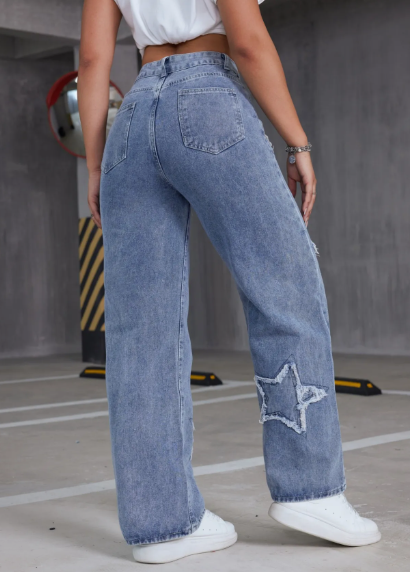 Jeans de Denim Estrella de Cintura Alta