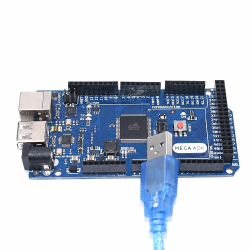 El Arduino ADK Genérico microcontrolador ATmega2560. Este posee un host USB para conectar teléfonos con sistema operativo Android, además posee una fuente de voltaje que convierte y eleva el voltaje desde la fuente DC para cargar el teléfono mientras está conectado al Arduino ADK.