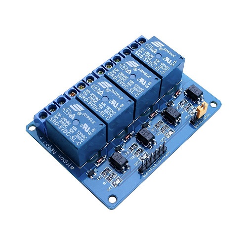 El módulo posee 4 Relays de alta calidad, capaces de manejar cargas de hasta 250V/10A. Cada canal posee aislamiento eléctrico por medio de un optoacoplador y un led indicador de estado. Su diseño facilita el trabajo con Arduino, al igual que con muchos otros sistemas como Raspberry Pi, ESP8266 (NodeMCU y Wemos), Teensy y Pic. Este módulo Relay activa la salida normalmente abierta (NO: Normally Open) al recibir un «0» lógico (0 Voltios) y desactiva la salida con un «1» lógico (5 voltios). Para la programación de Arduino y Relays se recomienda el uso de timers con la función «millis()» y de esa forma no utilizar la función «delay» que impide que el sistema continúe trabajando mientras se activa/desactiva un relay.
