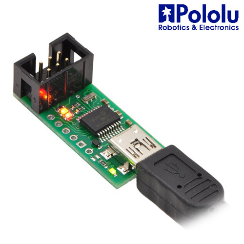 Este dispositivo es un programador para controladores basados en AVR, como nuestros controladores de robot Orangutan y el robot 3pi. El programador emula un STK500 en un puerto serie virtual, lo que lo hace compatible con el software de programación AVR estándar. Dos características adicionales ayudan con los proyectos de construcción y depuración: un puerto serie de nivel TTL para comunicación de uso general y un alcance SLO para monitorear señales y niveles de voltaje. Se incluyen un cable USB y un cable ISP.