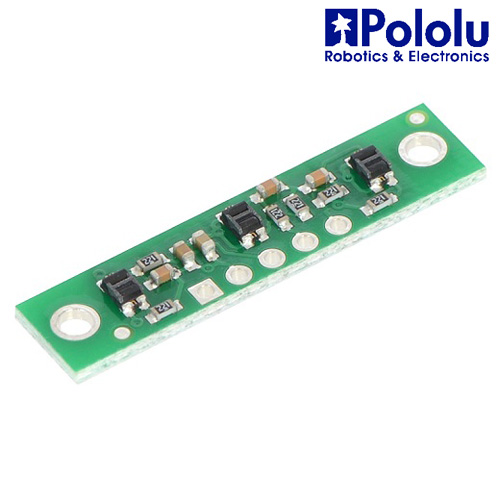 Los sensores están montados en un paso de 0.375 «, lo que permite que este conjunto se use como detector mínimo para un robot de seguimiento de línea.